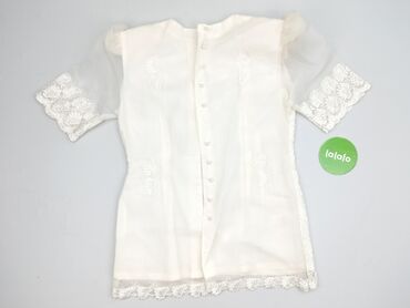Bluzka damska z krótkim rękawem w kolorze białym, ozdobiona ażurowymi wstawkami na dekolcie i ramionach. Charakteryzuje się okrągłym dekoltem i zapięciem na guzik z tyłu, co ułatwia zakładanie. Mar...