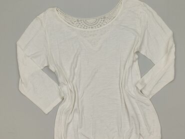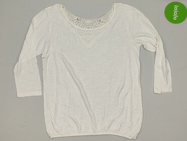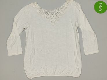 Bluzka damska w kolorze białym z koronkowymi wstawkami na rękawach. - Fason: luźny, z obniżoną linią ramion - Dekolt: okrągły - Rękaw: 3/4; górna część rękawów z półtransparentnej siateczki z kwia...