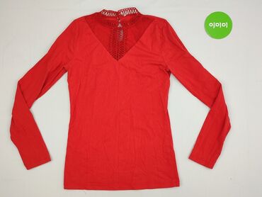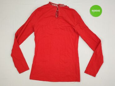 Czerwony damski longsleeve/bluzka z długim rękawem. - Klasyczny, półokrągły dekolt z delikatnymi marszczeniami z przodu - Rękawy długie - Dół i mankiety wykończone elastyczną gumką, co ładnie dopa...
