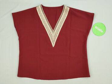 Bluzka damska z koronką przy dekolcie - Kolor: bordowy - Krój: luźny, z krótkim rękawem typu kimono - Dekolt: głęboki V, ozdobiony beżową koronką i ażurową wstawką - Materiał: 100% poliester (metk...