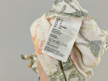Bluzka H&M, rozmiar EU 36 (US 6, CN 165/84A, MX 6). - Kolor: ecru/kremowy w czarne, okrągłe ornamenty. - Krój: luźniejsza góra z krótkimi, szerokimi rękawami typu nietoperz/kimono. - Dekolt z przo...