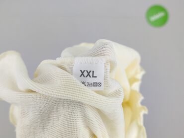 W serekKrótka bluzka damska z dekoltem w kształcie litery V, w rozmiarze XXL. Bluzka charakteryzuje się lekko marszczoną teksturą materiału oraz falbankami przy dekolcie, rękawach i na dole, co dodaje jej delikatności. Idealna do noszenia na co dzień, zarówno do spódnic, jak i spodni, stanowiąc wygodny element garderoby. Jest to używana bluzka w idealnym stanie, odpowiednia dla kobiet, które cenią sobie komfort i swobodny styl.