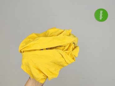 Jasnożółta bluzka damska z krótkim rękawem marki Reserved. Charakteryzuje się delikatnym, pionowym wzorem w paski oraz eleganckim kołnierzykiem. Z przodu bluzki znajduje się ozdobna falbanka wzdłuż...
