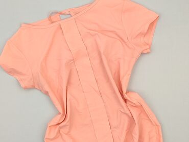 Bluzka damska w kolorze brzoskwiniowym - Krój: luźny, prosty - Rękaw: krótki - Dekolt: łagodnie zaokrąglony - Zapięcie: kryty suwak i pęknięcie z tyłu - Rozmiar z metki: M - Materiał: cienka, lekk...