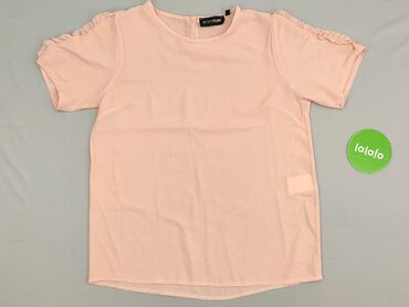 Bluzka damska w kolorze brzoskwiniowym - Krój: luźny, prosty - Rękaw: krótki - Dekolt: łagodnie zaokrąglony - Zapięcie: kryty suwak i pęknięcie z tyłu - Rozmiar z metki: M - Materiał: cienka, lekk...