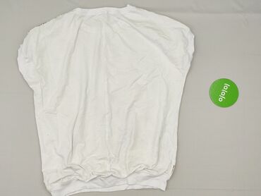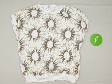 Bluzka damska z dzianiny, ecru/kremowa, z frędzlami - Krój: luźny, oversize; lekko opuszczone ramiona, krótkie rękawy - Dekolt: okrągły - Materiał: miękka, przewiewna dzianina o drobnym splocie - ...