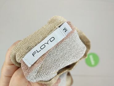 Bluzka damska FLOYD, rozmiar M. - Kolor: niebieski w biały, kwiatowy nadruk (stokrotki). - Krój: luźny T-shirt z krótkim rękawem; zaokrąglony dekolt. - Dół zaokrąglony, delikatnie dłuższy z tyłu dl...