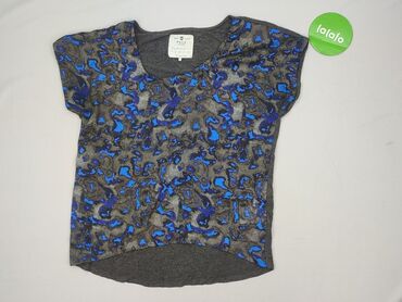 Bluzka damska PULZ, rozmiar M - Krój: prosta, luźniejsza forma z krótkim rękawem - Dekolt: półgolf/stójka, z tyłu zapięcie na mały guzik i pętelkę - Wzór: czarno-białe, pionowe pasy z etnicznymi m...Stan: