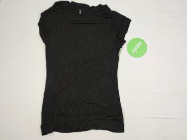 Damska bluzka/tunika AMISU (New Yorker) w kolorze czarnym. - Krój: kopertowy przód z dekoltem w serek, lekko rozkloszowany dół (peplum) - Rękawy: długie - Pasek w talii z ozdobną, złotą okrągłą kl...