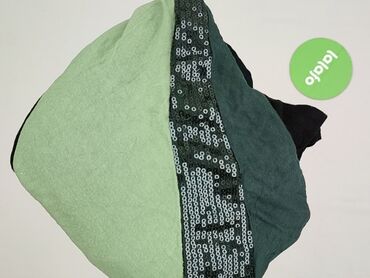 - Przód z geometrycznymi, ukośnymi wstawkami w odcieniach zieleni oraz pasem zdobionym ciemnozielonymi cekinami
