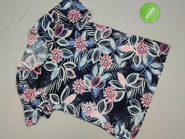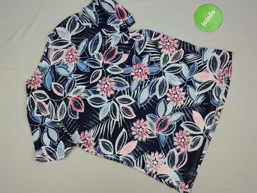 Krótki rękawBluzka damska z krótkim rękawem, ozdobiona wzorem w kwiaty i liście. Dominujące kolory to granat, róż, błękit i biel, tworzące harmonijną kompozycję. Krótki rękaw i okrągły dekolt zapewniają wygodę noszenia, idealną na cieplejsze dni. Lekki i przewiewny materiał sprawia, że bluzka jest odpowiednia do codziennych stylizacji. Charakteryzuje się rozmiarem L.