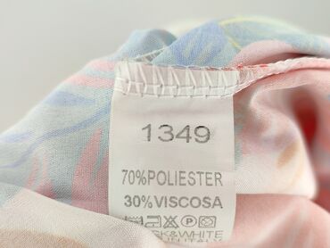 Krótki rękawBluzka damska z krótkim rękawem, wykonana z mieszanki poliestru i wiskozy, co zapewnia komfort noszenia. Charakteryzuje się wzorem w tropikalne liście w odcieniach czerwieni, zieleni i błękitu na białym tle, nadając jej letni i swobodny charakter. Okrągły dekolt i luźny krój sprawiają, że jest to praktyczny element garderoby na co dzień.