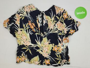 Bluzka damska New Look - Fason: luźna, kimono/ponczo z krótkim rękawem, długość do bioder - Wzór: biało‑niebieski, duże kwiaty; dół wykończony dekoracyjną bordiurą z drobnym wzorem - Dekolt: otwar...