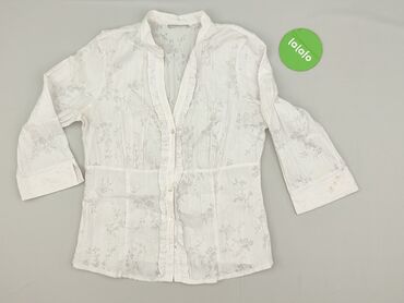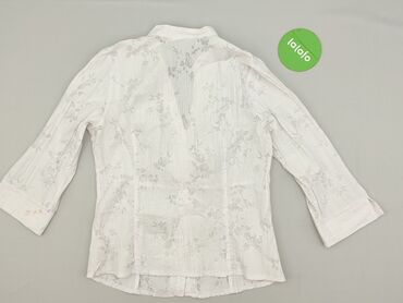Bluzka damska z długim rękawem, ozdobiona wzorem w kwiaty w odcieniach czerwieni, błękitu i szarości na białym tle. Bluzka posiada klasyczny kołnierzyk i guziki na całej długości. Wykonana jest w 1...Stan: