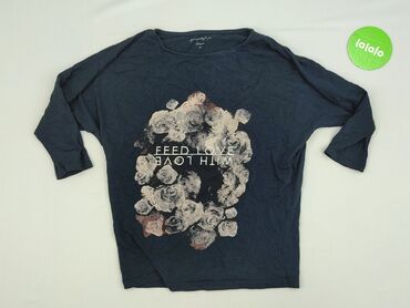 Bluzka damska heidi.com, rozmiar M - Kolor: granatowy z delikatnymi, kolorowymi “neps” (drobinki w tkaninie) - Krój: luźny, z obniżoną linią ramion - Rękaw: 3/4 - Dekolt: okrągły - Materiał: miękk...