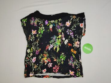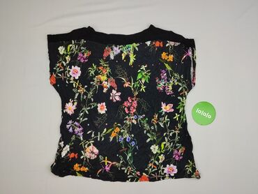 Bluzka damska z kwiatowym printem - Krój: luźny, prosty, z krótkim rękawem typu kimono - Dekolt: okrągły - Materiał: lekka, miękka tkanina o delikatnej fakturze (nieprzezroczysta) - Wzór: duże, ko...Stan: