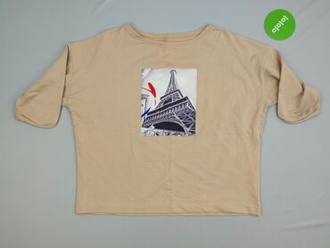 Bluzka damska BRAVOO Collection, rozmiar L. - Krój oversize z lekko opadającym rękawkiem, okrągły dekolt - Wzór w poziome paski w odcieniach ecru/krem i bieli - Przód z nadrukiem w stylistyce „Par...Stan: