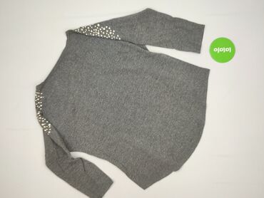 Szara bluzka/długi top z połyskującymi wstawkami z cekinów. - Kolor: jasny szary melanż - Krój: luźny, z obniżoną linią ramion - Rękawy: 3/4 - Dekolt: okrągły - Ozdoby: duże panele z białych/srebr...