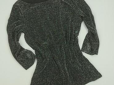 Damska bluzka z długim rękawem, czarna z delikatnym, połyskującym efektem (metaliczne, drobne nitki). - Krój: dopasowany, okrągły dekolt. - Materiał: elastyczna, miękka dzianina z lureksową nitką...