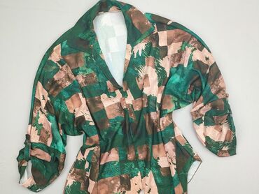Bluzka damska “Made in Italy” z efektownym wzorem - Krój: luźna bluzka z długim rękawem, dekolt w serek z miękką stójką/falbanką przy szyi - Materiał: lekka, zwiewna tkanina o kreszowanej fakturze...Stan: