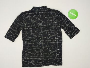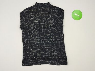 Bluzka damska z golfem, czarna w beżowy wzór liter „Y A”. - Fason: dopasowany, długi rękaw - Kołnierz/golf: miękki, wywijany, zapinany z tyłu na krótki suwak - Materiał: lekko elastyczna, karbowan...