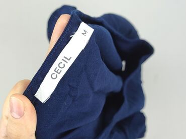 Bluzka damska CECIL, rozmiar M. - Fason: koszulowy, zapinany na guziki z przodu - Rękawy długie z możliwością podpięcia (patki z guzikiem) - Kolor: granatowy w drobny, biały wzór kropek/oczke - Ma...