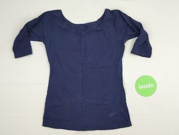 Damska bluzka z długim rękawem, granatowa. - Fason: lekko taliowana, zaokrąglony dół - Dekolt: w kształcie litery V z krótką listwą guzikową (3 guziki z przodu + 1 przy dekolcie) - Rękawy: długie,...