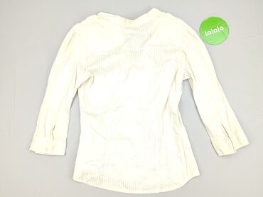Bluzka damska biała z długim rękawem - Krój: lekko taliowana, dekolt w kształcie litery V - Ozdoby: dekoracyjna, ażurowa wstawka/koronka biegnąca wzdłuż dekoltu i pionowo przez przód - Rękawy: dłu...Stan: