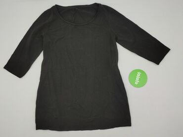 Czarna tunika/bluzka damska - Fason: wydłużony krój typu tunika, zaokrąglone dół z przodu i z tyłu - Rękaw: 3/4 z szerokim mankietem - Dekolt: okrągły - Rozmiar z metki: S (WOMEN) - Materiał: bawe...