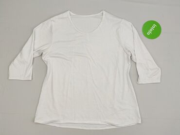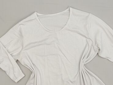 Biała bluzka damska z lekkiej, przewiewnej tkaniny - Rozmiar: S (metka) - Materiał: 100% bawełna - Fason: luźniejszy, tunikowy - Rękaw: 3/4 zakończony mankietem - Dekolt: w kształcie litery V z lis...