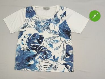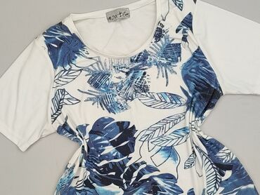 Bluzka damska Xiu Da - Kolor: biały w niebieskie kwiaty (róże), drobny, równomierny nadruk na całej powierzchni - Krój: luźny, lekko wydłużony; krótkie rękawy - Dekolt: okrągły, z delikatnymi mars...