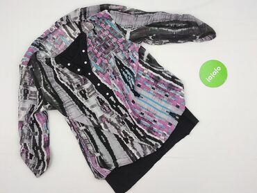 Bluzka damska Jone Konfektion, rozmiar 38 - Wzór: intensywne, wielokolorowe kwiaty na czarnym tle z kontrastowymi, dekoracyjnymi wstawkami w jasne linie - Krój: luźny, z asymetrycznym dołem; lekko ...Stan: