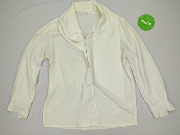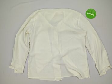 Bluzka damska w kolorze jasnego beżu/ecru. - Fason: luźny, koszulowy, z zaokrąglonym dołem (dłuższy tył). - Dekolt: okrągły z miękką, dekoracyjną klapą/kołnierzykiem. - Zapięcie: ukryta listwa z g...