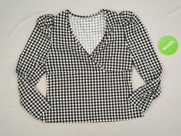 Czarna bluzka damska SHEIN - Rozmiar z metki: L (EU 40/42, US 8/10) - Fason: wiązana kopertowo z długimi rękawami - Dekolt/kołnierzyk: stójka z delikatną koronkową lamówką - Ozdobne wstawki z koro...