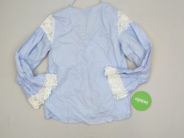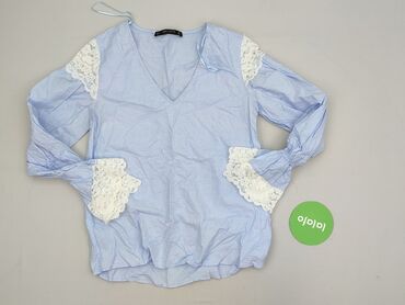 Bluzka ZARA BASIC - Model: bluzka w paski z ażurowym haftem - Kolor: biel z niebieskimi cienkimi paskami - Wzór: haftowane ażurowe kwiatki/gałązki na całej powierzchni - Krój: luźny, lekko rozszer...