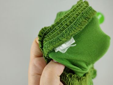 Zielona tunika/bluzka damska z krótkim rękawem. - Fason: luźny, z marszczeniem przy dekolcie i na ramionach; wiązania na końcach rękawków oraz po bokach u dołu (możliwość lekkiej regulacji długośc...