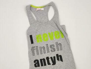 Szara koszulka bez rękawów damska/młodzieżowa Chillin (metka: M). - Materiał: miękka dzianina w jasnoszary melanż (skład niepodany na metce ze zdjęć). - Krój: prosty, lekko dłuższy tył, okrągły d...