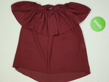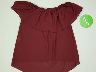 Bluzka hiszpanka Bershka - Model: odkryte ramiona (hiszpanka) z elastyczną gumką wokół dekoltu - Rękawy: długie, lekko bufiaste, zakończone gumką - Kolor: bordowy/wiśniowy - Rozmiar z metki: XS (M...