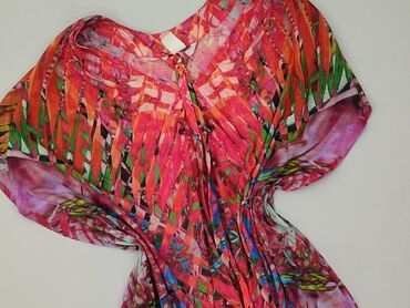 Damski kaftan w rozmiarze M/L, wykonany w 100% z wiskozy, co zapewnia lekkość i przewiewność. Charakteryzuje się wzorem w zygzaki i paisley w odcieniach zieleni, różu i pomarańczu. Idealny jako nar...