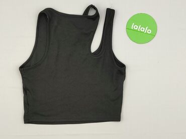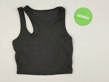 Bez rękawówCzarna bluzka damska bez rękawów, wykonana z prążkowanej dzianiny, charakteryzująca się asymetrycznym krojem z jednym odkrytym ramieniem i subtelnie wyciętym dekoltem. Fason crop top. Uniwersalny element garderoby, idealny do noszenia zarówno na co dzień, jak i do bardziej wyrafinowanych stylizacji. Zapewnia wygodę i swobodę ruchów, dopasowując się do sylwetki.