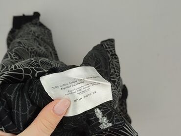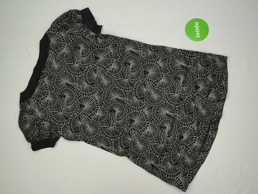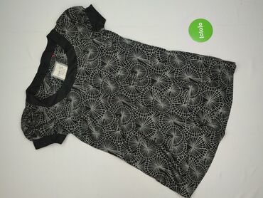 Krótki rękawCzarna bluzka damska marki Esprit z krótkim rękawem i okrągłym dekoltem. Bluzka posiada wzór składający się z białych, geometrycznych elementów przypominających wachlarze, rozmieszczonych na całej powierzchni materiału. Rękawy są lekko bufiaste, a dekolt wykończony szeroką lamówką w jednolitym czarnym kolorze. Wykonana w 100% z bawełny, co zapewnia komfort noszenia. Idealna do codziennych stylizacji.