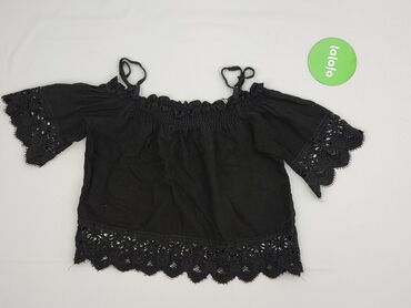 Bluzka damska typu hiszpanka, kolor czarny. - Fason: luźny, z odkrytymi ramionami - Dekolt/wykończenie: elastyczna gumka wokół dekoltu, umożliwia noszenie „off shoulder” - Rękawy: krótkie, ażurowe...