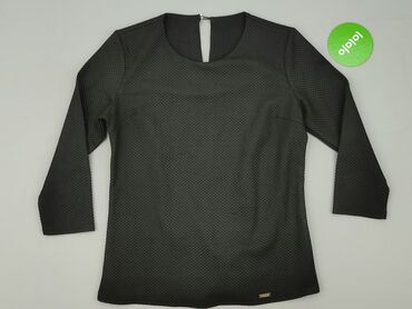 Rękaw 3/4Czarna bluzka damska z okrągłym dekoltem, charakteryzująca się trójwymiarowym wzorem o wypukłej teksturze, przypominającej plaster miodu. Rękawy o długości 3/4 są zwężane. Idealna do codziennych stylizacji, a także na bardziej formalne okazje. Z tyłu bluzka posiada małe rozcięcie z zapięciem na guzik, co ułatwia zakładanie i zdejmowanie.