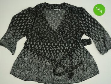 Rękaw 3/4Czarna bluzka damska z dekoltem w serek, ozdobiona białym wzorem. Charakteryzuje się bufiastymi rękawami oraz wiązaniem w talii, co pozwala na dopasowanie fasonu. Dół bluzki jest rozkloszowany, co nadaje jej lekkości. Idealna do stylizacji casualowych i półformalnych, zapewniając komfort noszenia.