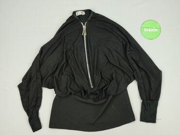 Bluzka damska z długim suwakiem - Kolor: czarny - Rozmiar z metki: L (EU 44, F 42) - Krój: luźny, lekko zaokrąglony dół - Dekolt: V z długim, dekoracyjnym zamkiem błyskawicznym w kontrastowym, jas...Stan: