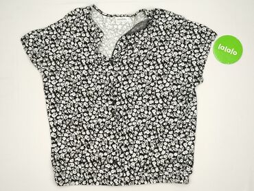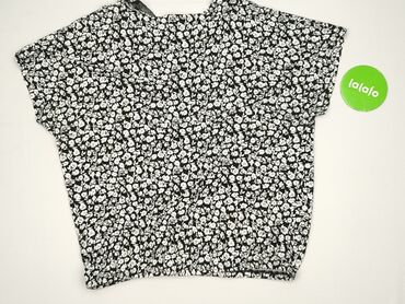 Czarna koszula/bluzka damska z krótkim rękawem i drobnym, białym kwiatowym printem. - Fason: luźny, z delikatnym marszczeniem i dekoltem w serek zapinanym na guziki (z przodu listwa z guzikami). ...