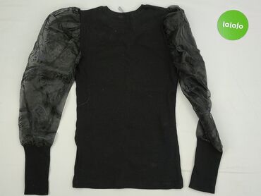 Czarna, zwiewna bluzka z długim rękawem - Materiał: cienka, półprzezroczysta tkanina o delikatnej fakturze (szyfonopodobna) - Krój: lekko pudełkowy, skrócony - Dekolt: głęboki, zaokrąglony - Zapięc...