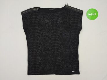 Krótki rękawCzarna damska bluzka z krótkim rękawem, ozdobiona unikatowym wzorem imitującym skórę węża na całej powierzchni. Bluzka posiada eleganckie detale w postaci zamków błyskawicznych na ramionach, które dodają jej nowoczesnego charakteru. Okrągły dekolt zapewnia klasyczny wygląd, a luźny fason gwarantuje komfort noszenia. Idealna do casualowych stylizacji, pasująca zarówno do spodni, jak i spódnic.