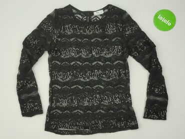 Czarna bluzka z długim rękawem, zdobiona cekinami - Klasyczny, półokrągły dekolt - Przód pokryty dekoracyjną siatką/koronką z cekinami ułożonymi w łukowate wzory, dającymi delikatny połysk - Tył g...