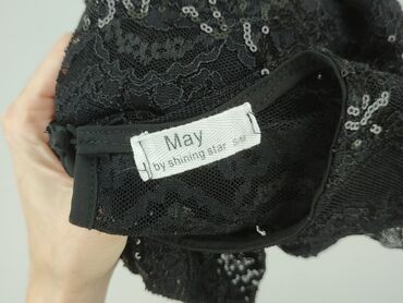 Długi rękawCzarna, koronkowa bluzka damska z cekinami – May by Shining Star, rozmiar S/M.